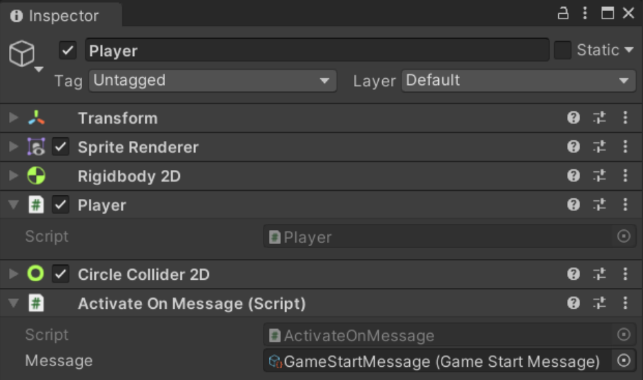 public class ActivateOnMessage : ActivateOnMessage<Message> { }When attached to a GameObject, above component looks like this: